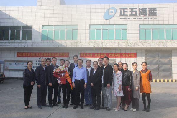 11月27日上午,正五集團(tuán)公司熱烈歡迎“全國(guó)勞動(dòng)模范”包菊輝同志載譽(yù)歸來(lái)。集團(tuán)公司董事長(zhǎng)黃禮雄帶領(lǐng)集團(tuán)總經(jīng)辦成員及各公司負(fù)責(zé)人、部門經(jīng)理在正五海產(chǎn)公司廣場(chǎng)熱烈歡迎。