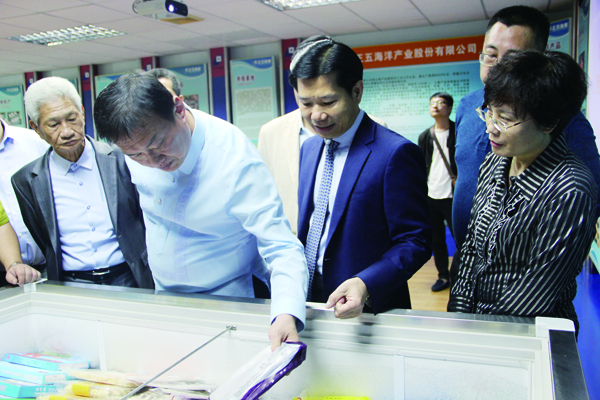 “北海擁有669公里的海岸線,自然環(huán)境很適宜發(fā)展?jié)O業(yè)?!?/span>在北海市政府副市長劉翔的陪同下,黃一成一行來到正五海產(chǎn)公司。在公司會議室里,考察團(tuán)一行興致勃勃地聽取了集團(tuán)公司黃禮雄董事長關(guān)于公司及北海市水產(chǎn)品特別是南美白對蝦的生產(chǎn)和出口情況。黃一成一行表示下一步將與正五海產(chǎn)公司進(jìn)行業(yè)務(wù)上的合作,不斷深化與正五海產(chǎn)公司的交流合作,實(shí)現(xiàn)雙方互利互贏、共同發(fā)展。以輻射、拉動廣西數(shù)百萬農(nóng)民參與種養(yǎng)、加工、運(yùn)輸創(chuàng)收脫貧致富。