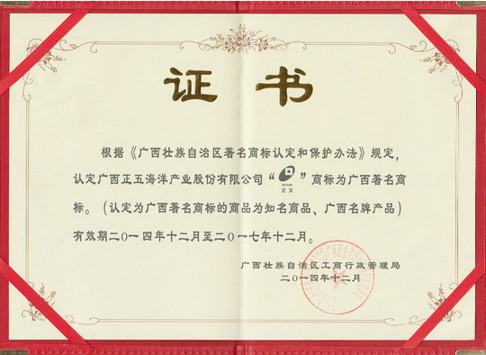 經(jīng)廣西著名商標(biāo)評審委員會評審確認(rèn),廣西壯族自治區(qū)工商局同意,正五海產(chǎn)公司注冊商標(biāo)“ZHENCWU正五”被認(rèn)定為廣西著名商標(biāo),并于日前獲得了自治區(qū)工商局頒發(fā)的廣西著名商標(biāo)證書。